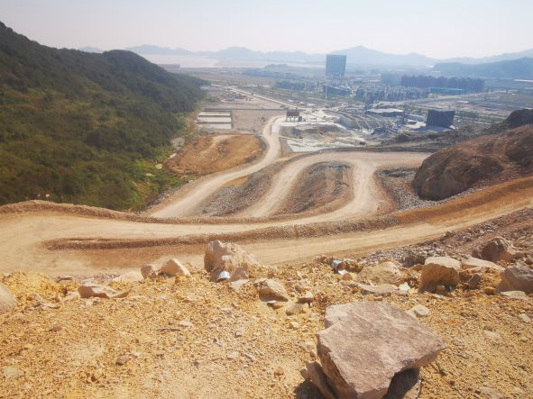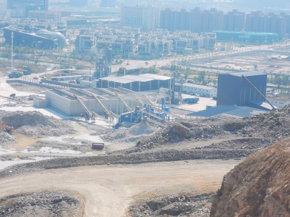 寧波象保合作區(旦門鹽場區塊)平基工程象山縣新橋鎮高灣村、東陳鄉東灣村東灣山建筑用石料(凝灰巖)礦是一家新開的工程礦山,屬山坡露天開采,礦山位于浙江省象山縣新橋鎮西側,采礦權人為寧波象保合作區投資開發有限公司,該工程礦山開采礦種為建筑用石料(凝灰巖),采礦許可證核定的生產規模為588.14萬噸/年,開采深度+140.00m~+3.50m,礦區面積0.1862km2。開采方式屬露天開采,礦山采用公路開拓汽車運輸,深孔爆破,自上而下分層、分臺階開采。礦石主要用于寧波象保合作區(旦門鹽場區塊)平基工程拋石及填料及本項目使用的混凝土骨料。 2020年9月30日象山縣應急管理局下發了《非煤礦山建設項目安全設施設計安全許可意見書》(象應急管礦[2020]3號),核定的基建期為9個月。該在基建工程施工時,因西側運輸道路局部區域布置在界外,涉及的政策處理存在難點,影響基建期建設進度,企業申請基建延期。2021年6月2日,象山縣應急管理局同意延期9個月,基建期延長至2022年3月31日止。現礦山基建工作已基本結束,將申請竣工驗收。