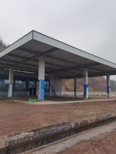 本項(xiàng)目為新建項(xiàng)目,站區(qū)總用地面積為7129㎡,建構(gòu)筑物占地面積為789.1㎡,總建筑面積為941.4㎡,加油區(qū)罩棚建筑面積為549.6㎡,站房建筑面積為386.4㎡,卸油房建筑面積為5.4㎡。