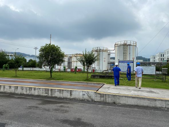 浙江深藍新材料科技有限公司成立于2003年12月,法定代表人陳華,類型為有限責任公司(臺港澳法人獨資),原名浙江深藍輕紡科技有限公司,原位于浙江省德清縣新安鎮(zhèn)下舍工業(yè)園區(qū),2012年著手搬遷至杭州市建德高新技術(shù)產(chǎn)業(yè)園五馬洲區(qū)塊(建德市梅城鎮(zhèn)姜山路2號),2016年建成投產(chǎn),主導(dǎo)產(chǎn)品為合成革用著色劑、表處劑、樹脂和助劑四大類產(chǎn)品,現(xiàn)有職工150人。公司現(xiàn)持有安全生產(chǎn)許可證為2022年8月8日由浙江省應(yīng)急管理廳延期換發(fā),許可范圍:年產(chǎn)聚氨酯樹脂10000噸、功能型著色劑(含N,N-二甲基甲酰胺10%、二丙酮醇17%)3500噸、溶劑型表面處理劑(含N,N-二甲基甲酰胺60%、甲苯4%,丁酮6%)12000噸,有效期:2022年08月19日~2025年08月18日。