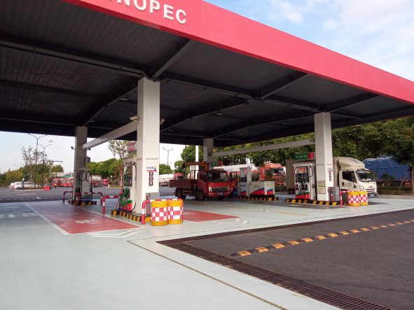 西湖服務區南側加油站位于杭州市雙浦鎮小江村西湖服務區(南側加油站),加油罩棚下設有4臺三油品六槍潛泵式電腦稅控加油機,埋地罐區設有3只30m3的汽油罐和2只30m3的柴油罐,均為非車道罐,加油站在用油罐總容量為150m3,柴油罐容折半計入油罐總容積為120m3,按照《汽車加油加氣加氫站技術標準》(GB50156-2021)所規定的等級劃分,屬于二級加油站。